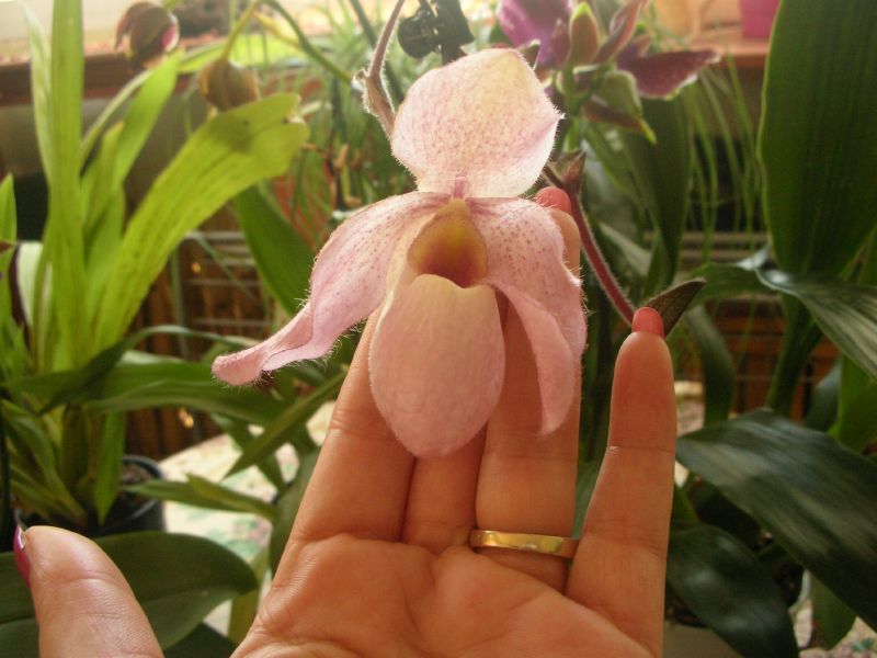 Re: GENUS PAPHIOPEDILUM WAKE y Curiosa sería bueno poder saber como son las hojas. Con esos tonos y el estaminodio parecido (aunque no consigo ver la parte final) podríamos encontrar el Deperle rosa (aunque su tono sea un poco más subido)y Dellaina. El estaminodio me recuerda mucho al del primulinum, por lo tanto podría ser un cruce con delenatii. Está claro que con los híbridos no es fácil aventurarse. Si os fijais, el mío tiene "parecido" con el de curiosa. No en vano uno de sus parientes es el delenatii. Si puedes por una foto de sus hojas Besos