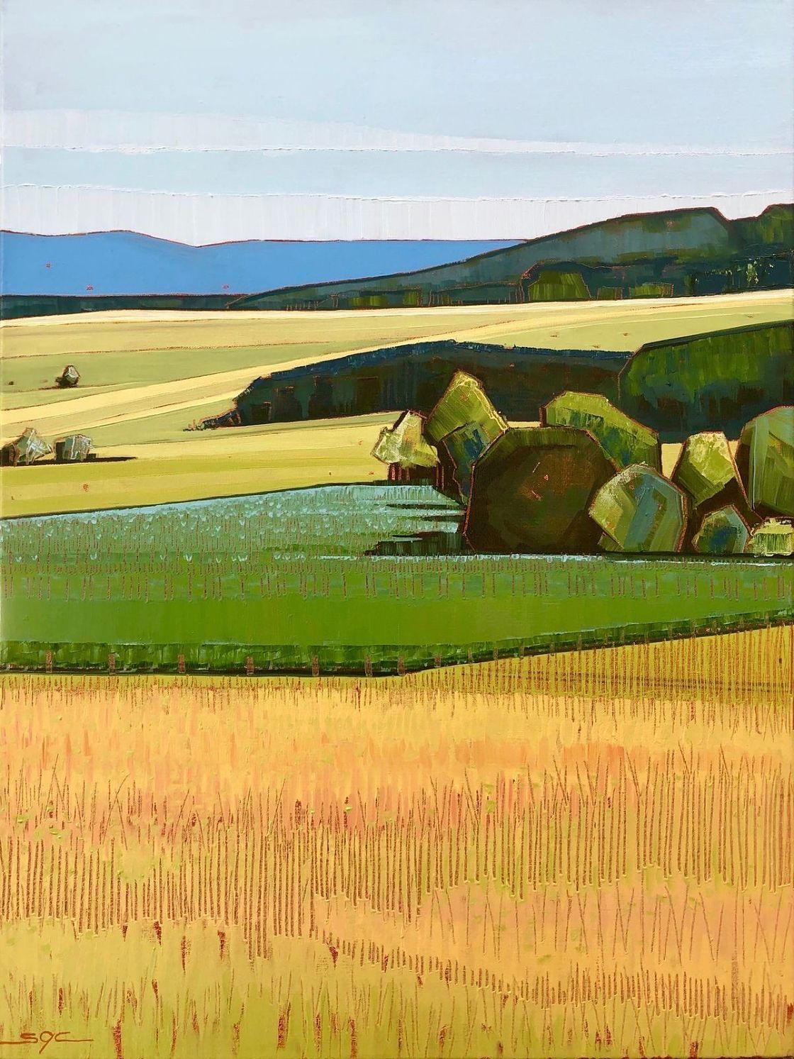 Sarah Gayle Carter, o el énfasis en el primer plano. He encontrado esta pintora en la red, y me ha parecido característico de ella el énfasis por el primer plano, muchas veces poco valorado entre los paisajistas. Observo que en algunos de sus cuadros los "objetos" (árboles, sotos), que dan escala y que sirven de contraste a la cierta abstracción de los demás, se sitúan en el tercio central: