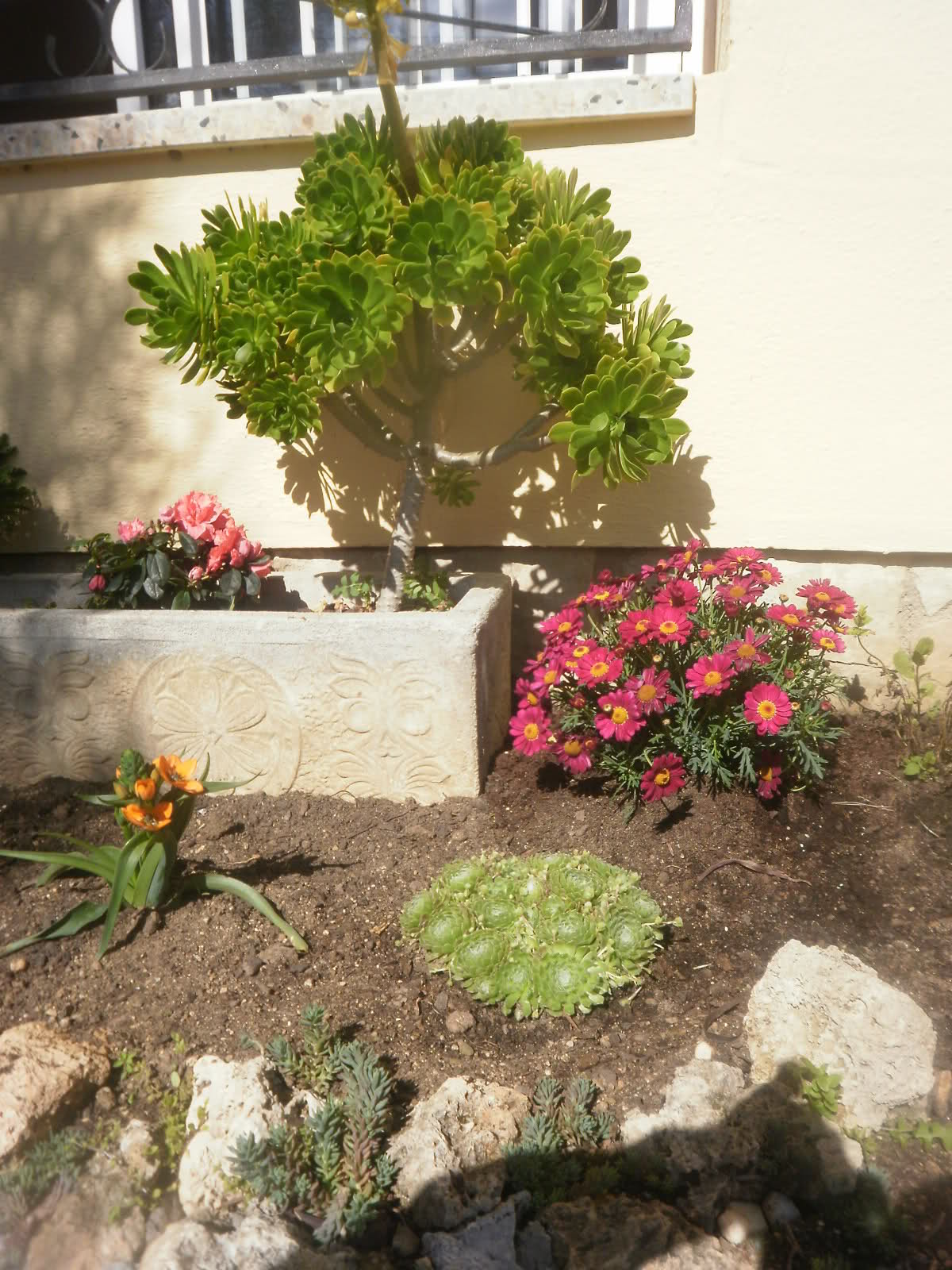 Re: ¿Que son? y en la primera foto añade Aeonium y Pericallis En la segunda foto veo al menos Ornithogalum, Tagetes, Dianthus y Bellis la última foto es un cerezo