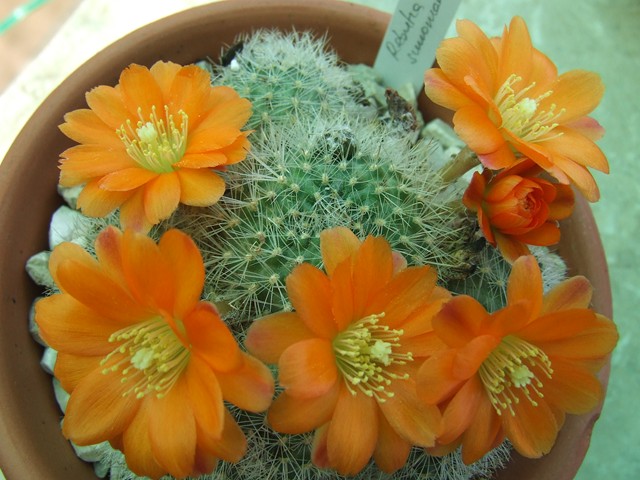 Re: MIS REBUTIAS Y LAS VUESTRAS Bueno, quería enseñaros unos esquejes que planté hace MENOS DE UN MES. Las pequenitas eran más pequeñas que los garbanzos y pensé que se morirían todas. Cual es mi sorpresa que en TRES SEMANAS, no sólo han empezado a brotar nuevas cabezas, sino que por encima se HAN LLENADO DE FLORES Por lo que se ve, prenden genial https://img101.***/img101/1104/p1010182xe1.jpg https://img510.***/img510/2273/p1010184op6.jpg REBUTIA FABRISII AUREIFLORA