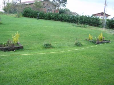 Bueno, ayer saqué las fotitos en cuestion, espero haberlas sacado bien.La zona delimitada con la manguera mide 12 metros de largo (si bien se podría llegar hasta los 16 metros de largo ,como expliqué anteriormente, por 5'5 metros de ancho, todo depende de lo grande que se quiera hacer)