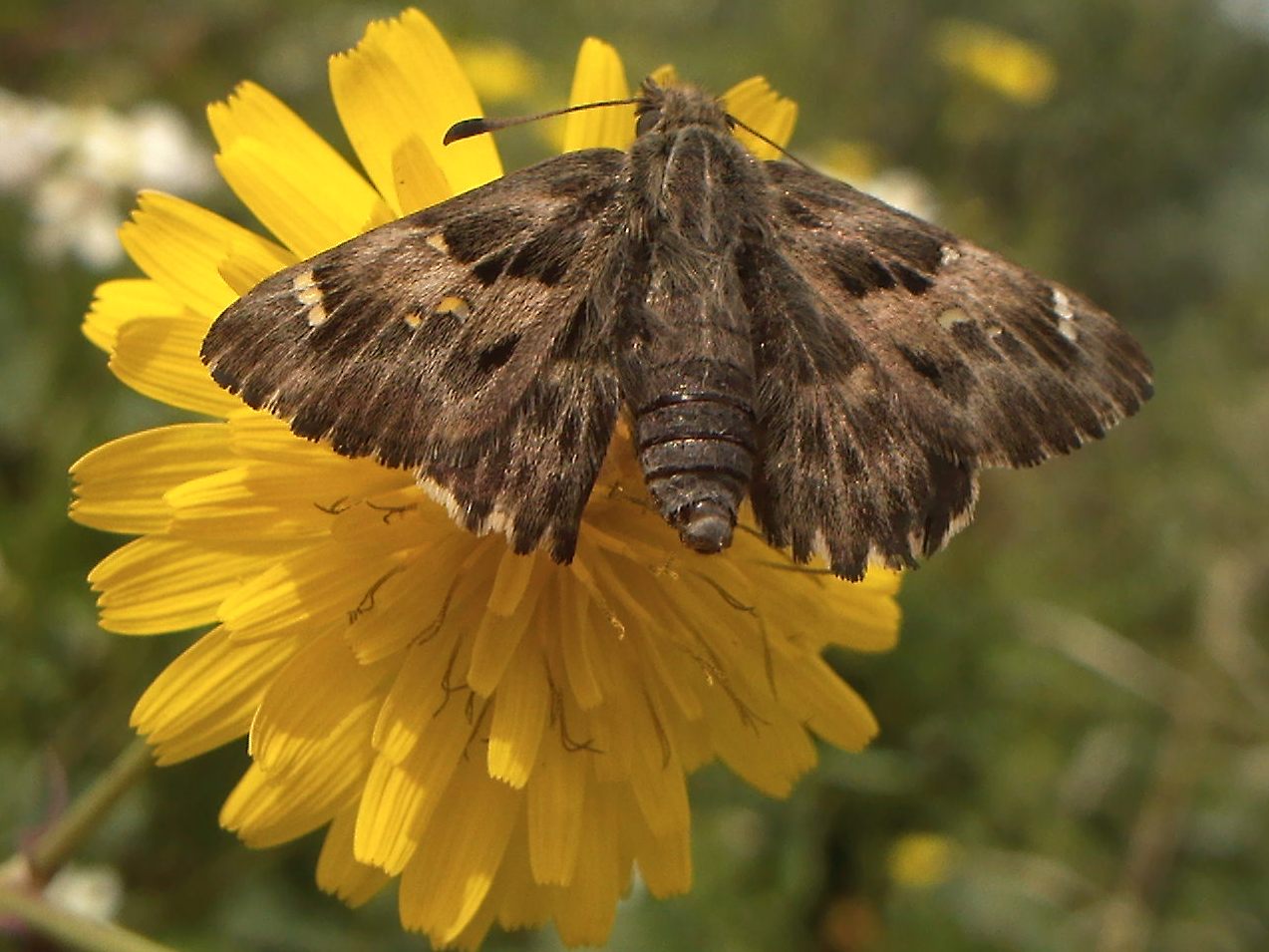 Hola. Subo fotos de hoy. El viento ha amainado y en la zona ha habido explosión de Eucera y Polistes dominulus. A parte, otros bichos muy moviditos como los comunes Eupeodes, Episyrphus y Melanostoma, y he visto una ¡Cheilosia hembra! 140 Trachys troglodytiformis Lo subo porque es el bicho más pequeño que puedo retratar. 141 Cópula muy intensa de Cocinella septempunctata El macho se movía más que Bisbal en una centrifugadora. 142 Pisaura mirabilis (Id. Isidro) 143 Carcharodus alceae. Por fin emergió la última oruga de la experiencia de este Invierno. "Oruga en un bote" En el RE IV os puse las fotos de la oruga y su crisálida. Está sana y triscando en mis zona de bicheo.