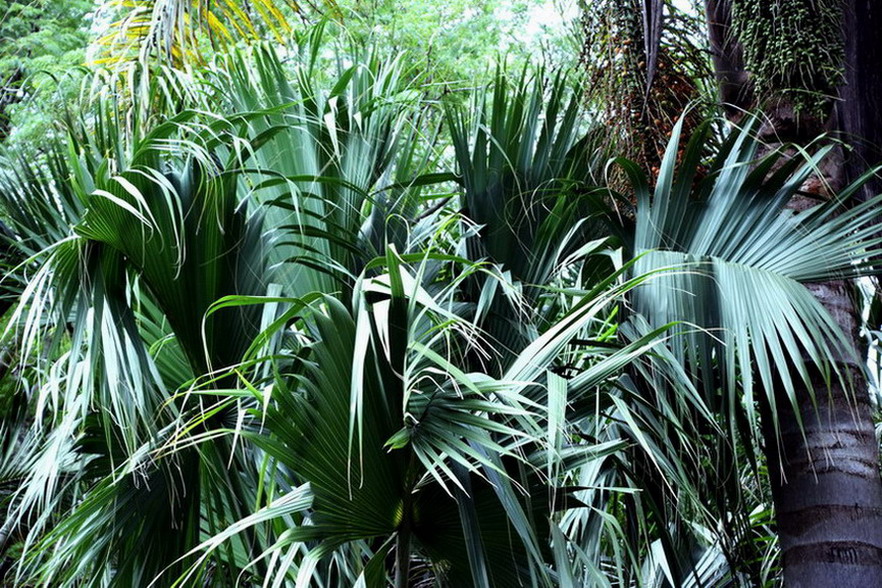 Este verano conseguí semillas. En el artículo de Font de la página de pindo del lado derecho coloca a los 3 Sabales de mi zona (S. mauritiiformis, yapa y mexicana) "...En su trabajo, Scott Zona contempla solo como «aceptados» 15 Sabal: Posteriormente (1991) Hermilo Quero ha encontrado diferencias marcadas en una población mexicana de Sabales,..." Pero Font hace otra agrupación: El S. yapa, la especie de tronco muuuuy delgado, sin restos de hojas en el tronco, poco frondoso y las hojas caen como "arañas", abunda en la Península de Yucatán desde cerca de mi ciudad y hacia el Sur en el Golfo (o sea no se ve en el Norte) y hasta el Caribe (ahí sí desde Cancún hasta Belice... o más allá). El diámetro de la fronda abarca unos 3 metros de lado a lado. El S. mauritiiformis lo coloca también entre los de tronco delgado (aunque no es nada chico): Dicen en Palmpedia: "...2.) Yapa tiene una hoja como Mauritiiformis, pero las dos son muy diferentes tras una inspección minuciosa. Si puedes ver ambos juntos, será obvio....". Ponen esta foto: Belice De derecha a izquierda de Sabal yapa, Sabal mauritiiformis y Attalea cohune. Foto de Scott SC. ..más adelante: "...2.) La hoja es bicolor. La parte superior es de un color diferente que la parte inferior..." coseché semillas de dos especies que se ven así como en la foto: notable la diferencia de tamaño. Desafortunadamente Palmpedia no tiene foto de semillas en la página... A ambos los mencionan como Sabales "de tronco fino"...... Queda el S. mexicana, tiene siempre (?) pegados los restos cortados de las hojas y generalmente nunca los vemos colgando, siempre las cortan y el díametro del tronco enorme: Visto "en vivo" especie enorme, también el largo del folíolo así como el diámetro de la hoja. Sin meterme al análisis técnico de flores, inflorescencias, etc....Saludos.