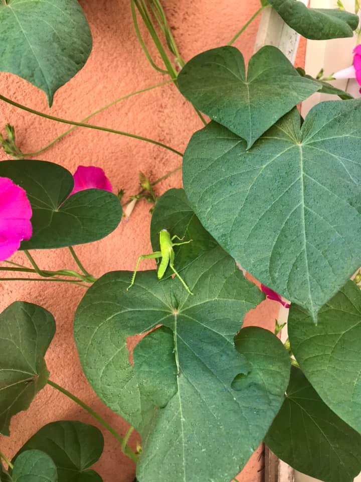 Llevo un mes o así, que me encontré en mis dalias, unos pequeños saltamontes, intentamos quitar los que pudimos, pero cada ´día me encontraba con hojas, agujereadas, más agujeros, y saltamontes cada vez más grandes.