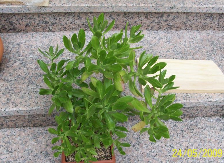 Re: Sedums bueno os pongo mi sedum "monstruoso" en cuestion de un año se ha puesto enorme y eso que esta en una maceta chiquita. ademas que bracito que se rompe ,bracito que enraiza. es una foto atrasada,ahora esta un "pelin" mas grande, en cuanto pueda pongo una actual. la verdad es que ya no se si cambiarlo de maceta o plantarlo en tierra (aunque viendo como crecio en maceta miedo me da). tambien estoy pensando si podarlo tipo arbolito como la crassula ovata o dejarlo crecer a su aire