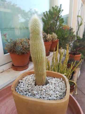 pues si, iria muy bien que nos dijeran algo, este mio ya es muchos años de tenerlo y tan poco crece casi te dire que tiene las medidas muy similares a cuando llego y en esta década le he cambiado la tierra cada 2 años, pues al estar en muna maceta chica pienso que necesitara nutrientes `por eso le cambio el sustrato, y este verano es el que ha hecho mas flores, pero bueno parece seguir sano a si que a esperar a ver si nos informan, a algunos les compro otro de igual por si necesitan compañero, pero no creas son de los que siguen sin florecer y ya tiene años _____________________________________________________________________ cepalocereus polylopha senilis le he cambiado de maceta, estaba en una de plástico y estaba tumbada, a si que esta que desaloje de los orocereus es bastante pesada para este cactus, ya tenia todo un cepellón de raíces, que no le he tocado, pero ahora tendrá mucha mas tierra y cuando ya son de bastante edad y tienen su nido de raíces las expanden a su gusto, hasta luego