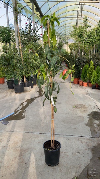 Hueco ocupado. Mango Osteen. He recorrido cuatro viveros cercanos y me he decidido por este ejemplar, que aunque los había mucho más grandes, pero me gustó por verlo sano y con hojas fuertes. Por ahora no voy a plantarlo en el suelo porque mi idea es hacerle una adaptación a ese sitio ya que lo tenían bajo techo. No tengo muchas esperanzas en él por la dificultad que entraña, pero voy a intentarlo.