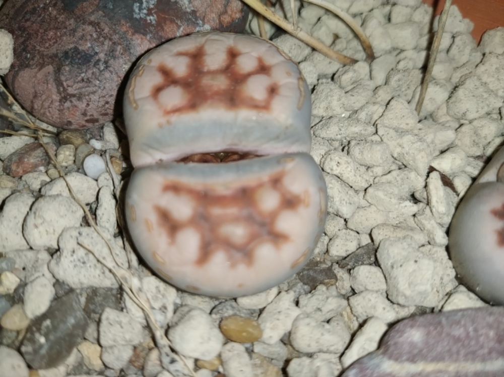 Pues si es una pena, si...y aún me da más pena descubrir que 8 lithops han abortado la flor, bueno, son 7 lithops y 8 capullos... El tiempo tan bueno que seguimos teniendo con temperaturas tan altas arrugan los lithops bastante, y entre eso y que están con la muda se rajan con solo mirarlos... hoy me he encontrado alguna fisura más abierta, y resulta que casi todos los L. karasmontana que no han florecido han abortado la flor...porque a estas alturas no creo que la vayan a sacar no??? Este va a doblar cabezas Este también va a doblar Y éste tambien duplica, curioso que se ven los estambres llenos de polen.... Este es, de momento, el único lithops de dos cabezas de mi colección, pues las dos cabezas han abortado la flor... Otros comenzando la muda Incluso uno de los recién llegados @tecnopica los L. aucampieae koelemanii "negro" que tienen un mes y un día, los subo aqui para no interrumpir el hilo de @Numb